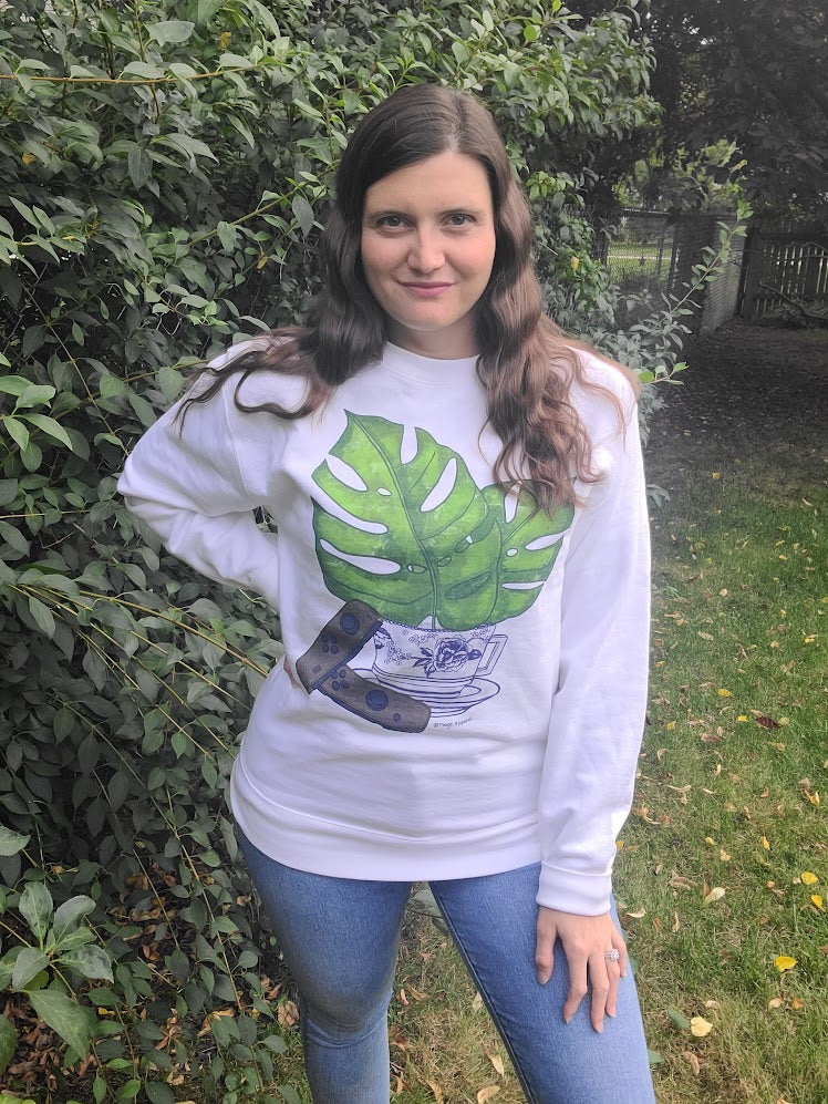 For those plant loving Cozy Gamers out there. The Monstera is one of the most beautiful and popular houseplants. Cozy up in this soft sweatshirt, pour yourself a cup of tea, pull out your favorite game and get gaming, surrounded by of all your plants!