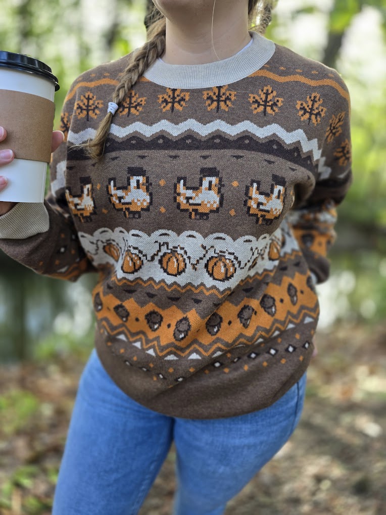 Fall Pixel Chicken Sweater