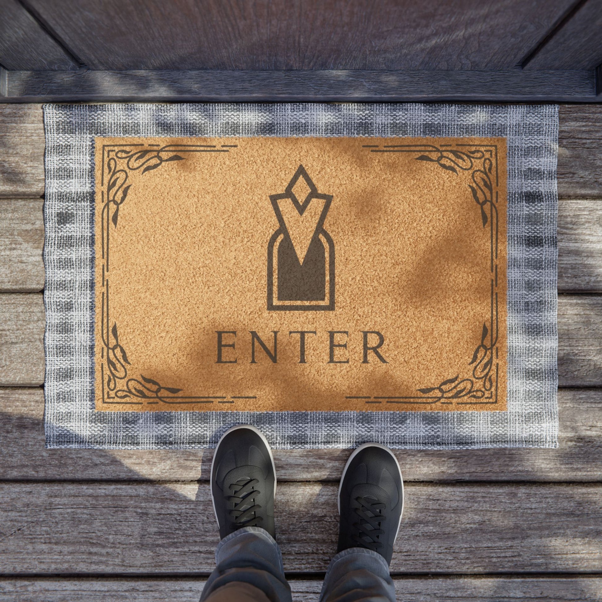 Enhance your home entrance with this Waypoint Enter Doormat, perfect for gamers and fantasy lovers. The doormat gives a geeky and adventurous vibe, fitting seamlessly into a gamer's home. Ideal for those who love the Skyrim game and dragon-themed decor. Great for welcoming guests during gaming nights or any casual gathering.